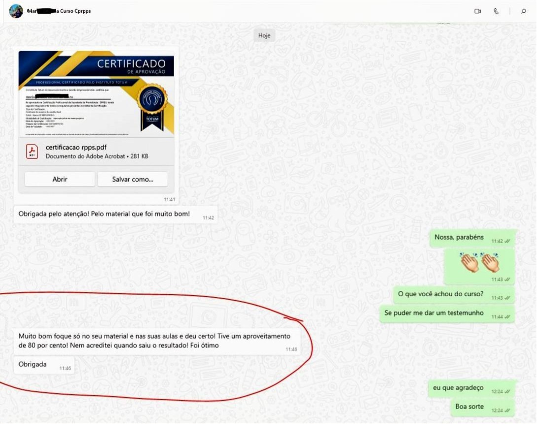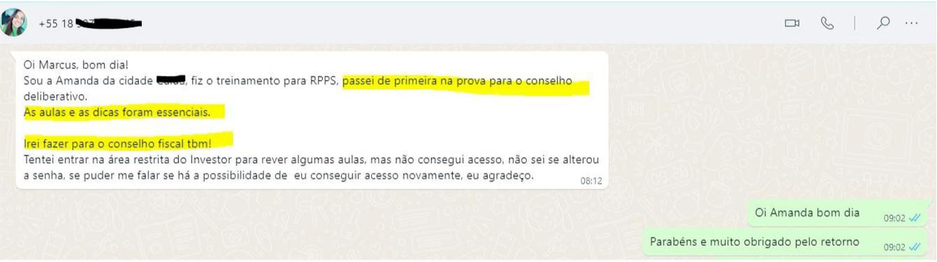 Eu precisava de um curso objetivo e aplicável. A didática é direta, com exemplos do dia a dia do RPPS. O acompanhamento até a prova fez toda a diferença.