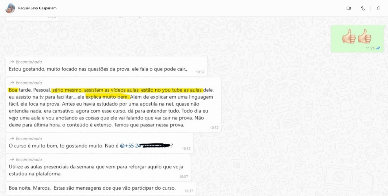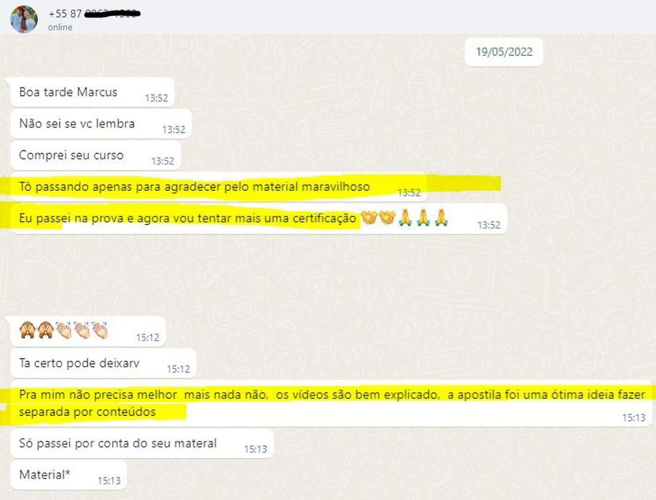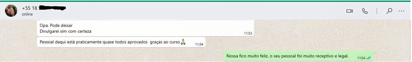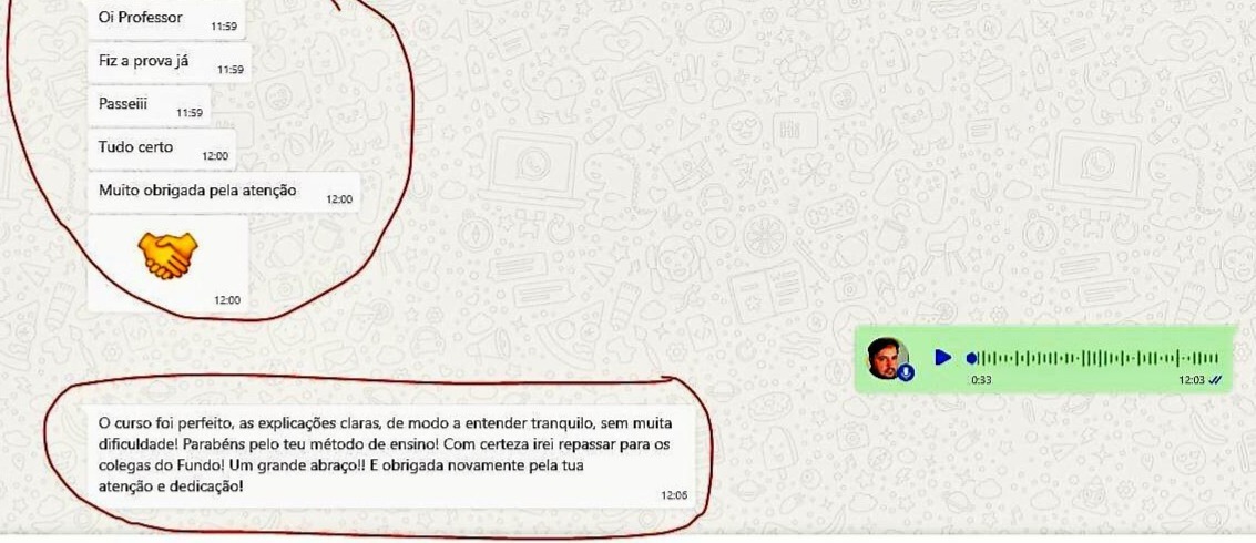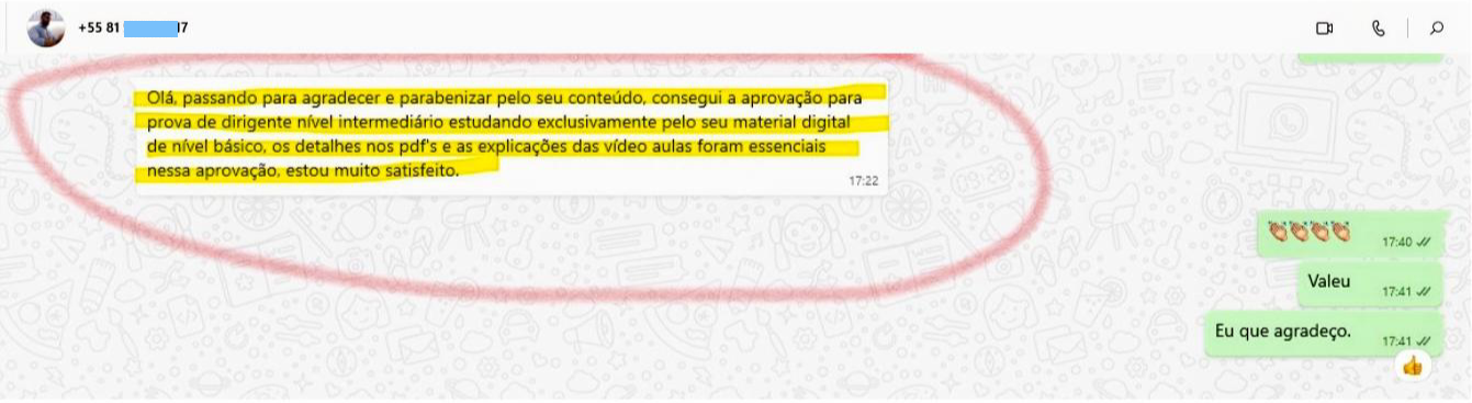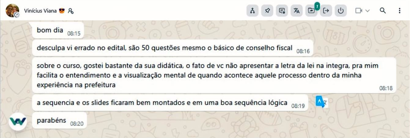Nosso suporte pedagógico está disponível para tirar dúvidas por e-mail e WhatsApp. Você não fica sozinho: durante todo o curso, pode enviar dúvidas sobre conteúdo, prova ou mesmo sua estratégia de estudo.