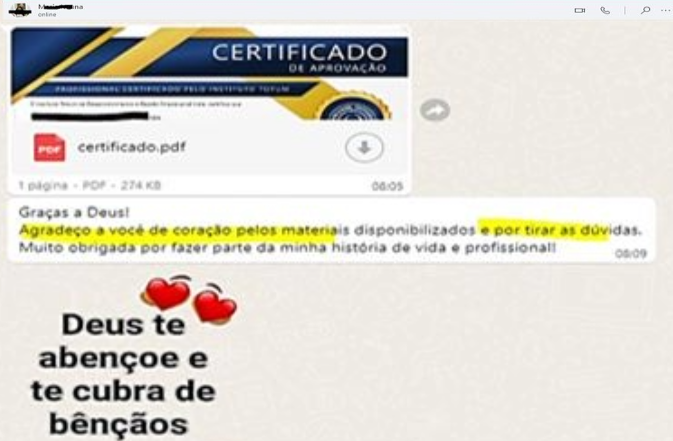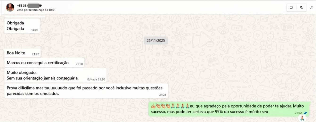 Além da certificação, ganhamos direção de governança: rotinas, prioridades e organização. O suporte depois das aulas dá tranquilidade e continuidade.