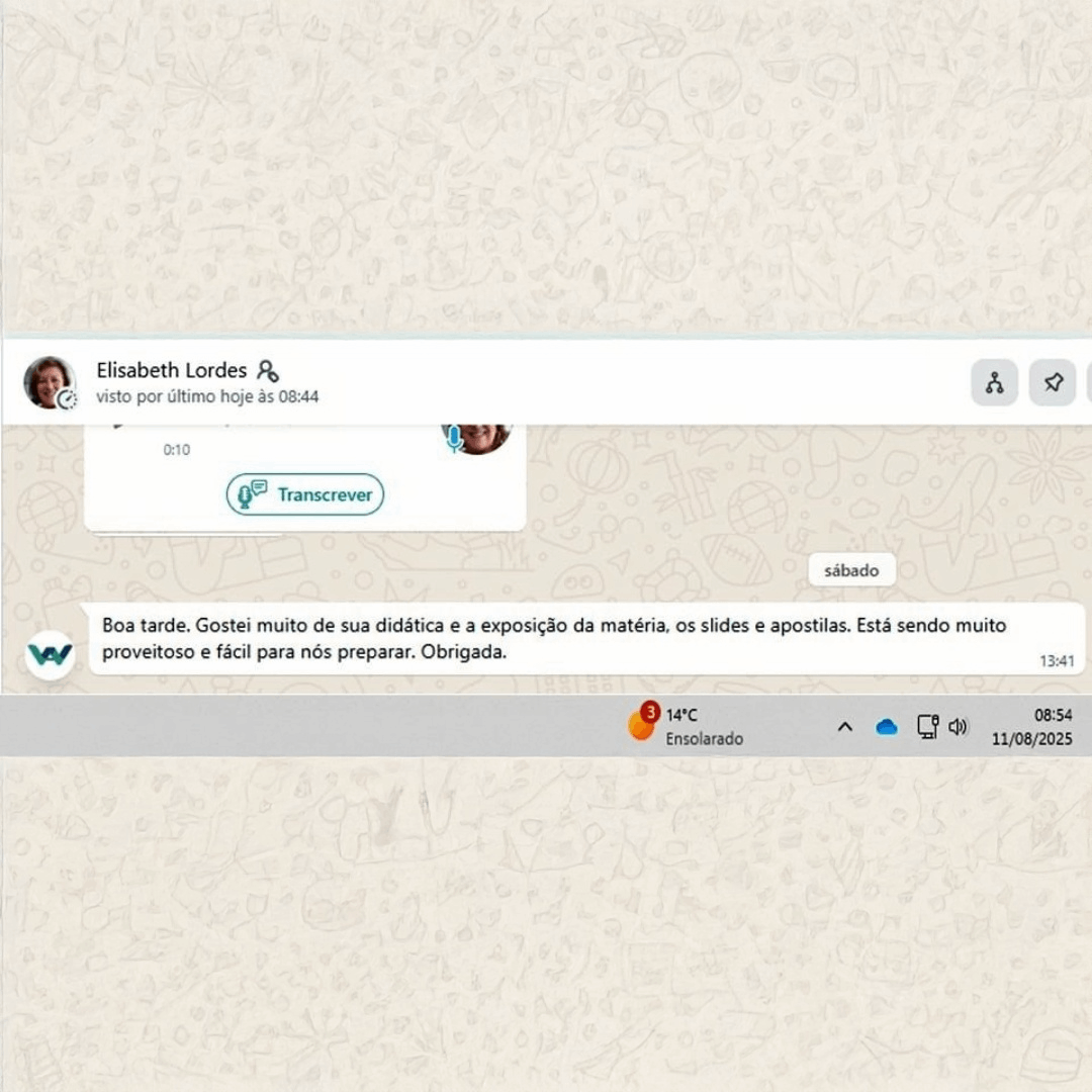 Sim! Você pode assistir às aulas onde e quando quiser, pelo celular ou computador. Nosso ambiente é intuitivo e organizado em módulos e aulas curtas — ideal para quem tem pouco tempo e precisa de objetividade.