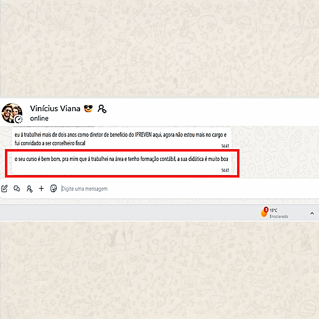 Nosso suporte pedagógico está disponível para tirar dúvidas por e-mail e WhatsApp. Você não fica sozinho: durante todo o curso, pode enviar dúvidas sobre conteúdo, prova ou mesmo sua estratégia de estudo.